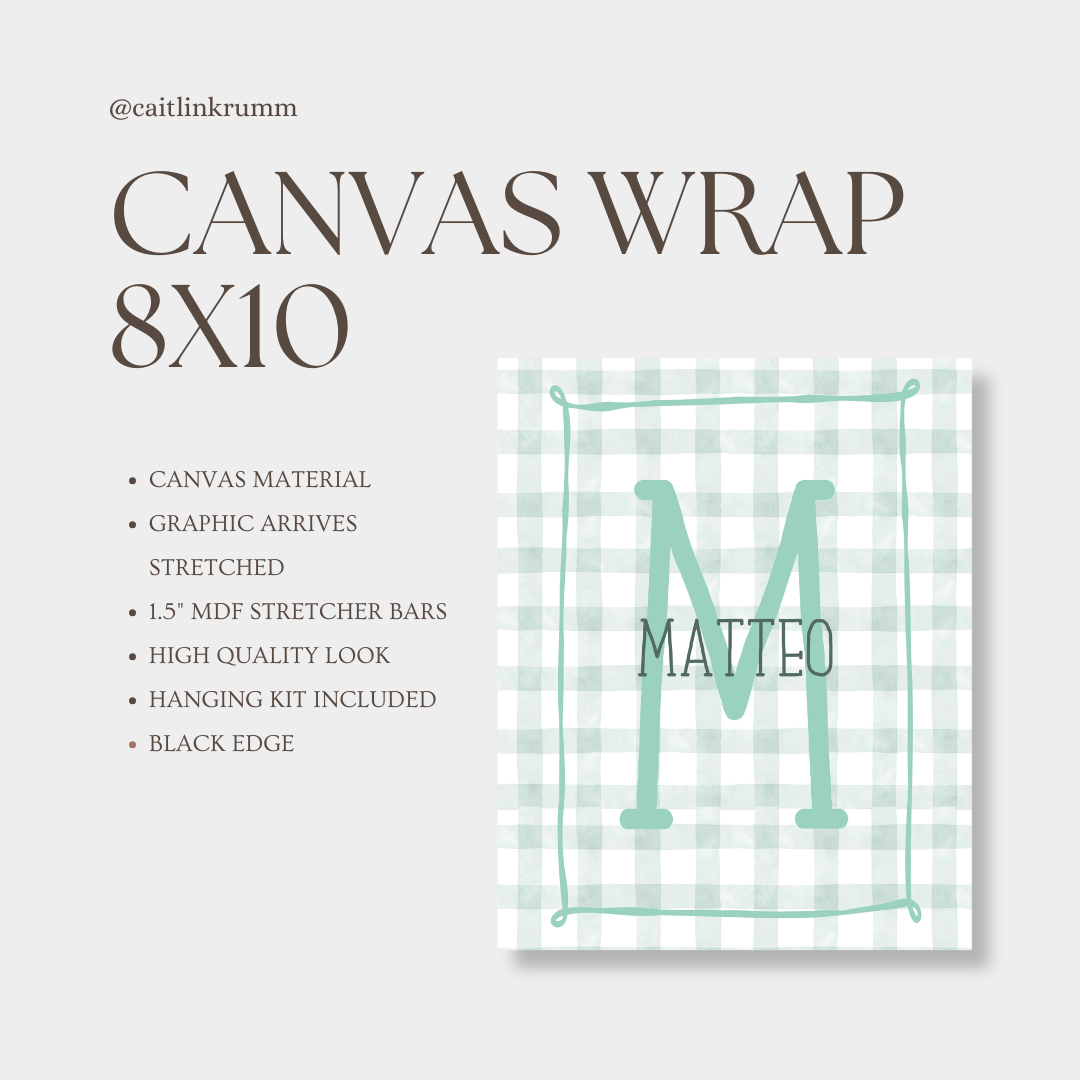 Cool Pastel Custom Name Canvas 8x10 | Personalized Letter Sign in Baby Blue, Mint, Soft Pink & Lilac | Calm Modern Nursery & Kids Room Decor