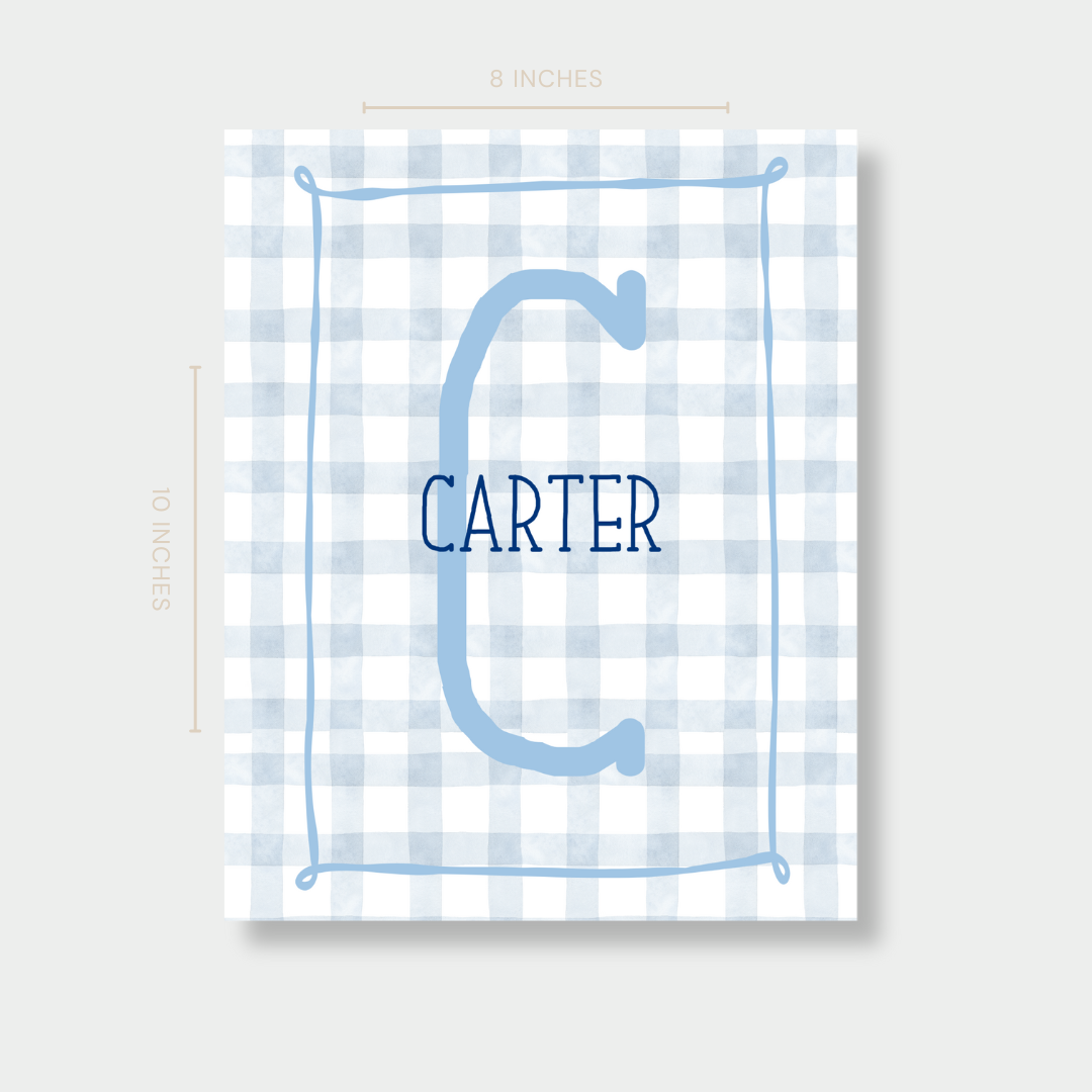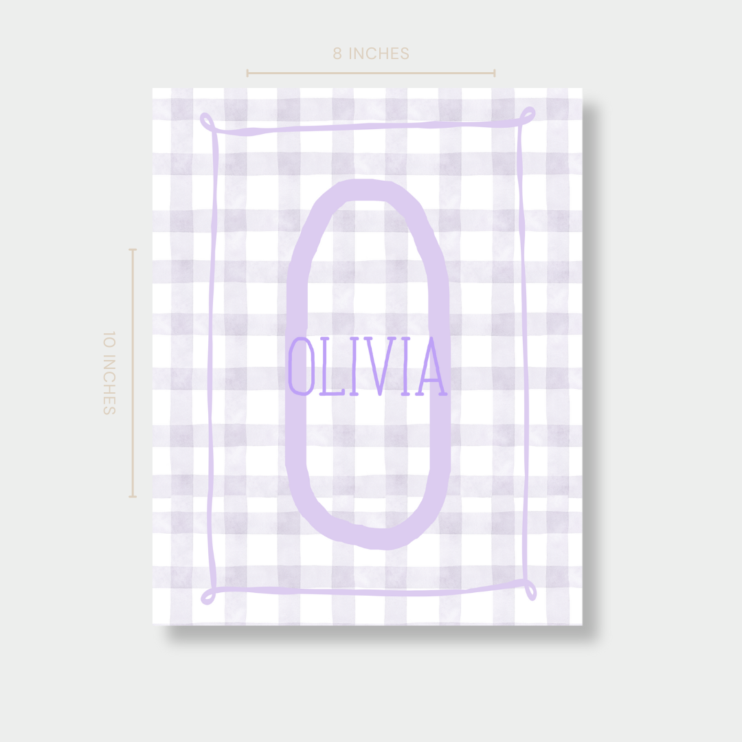 8x10 personalized letter sign in powder blue and lilac for calm modern kids room decor