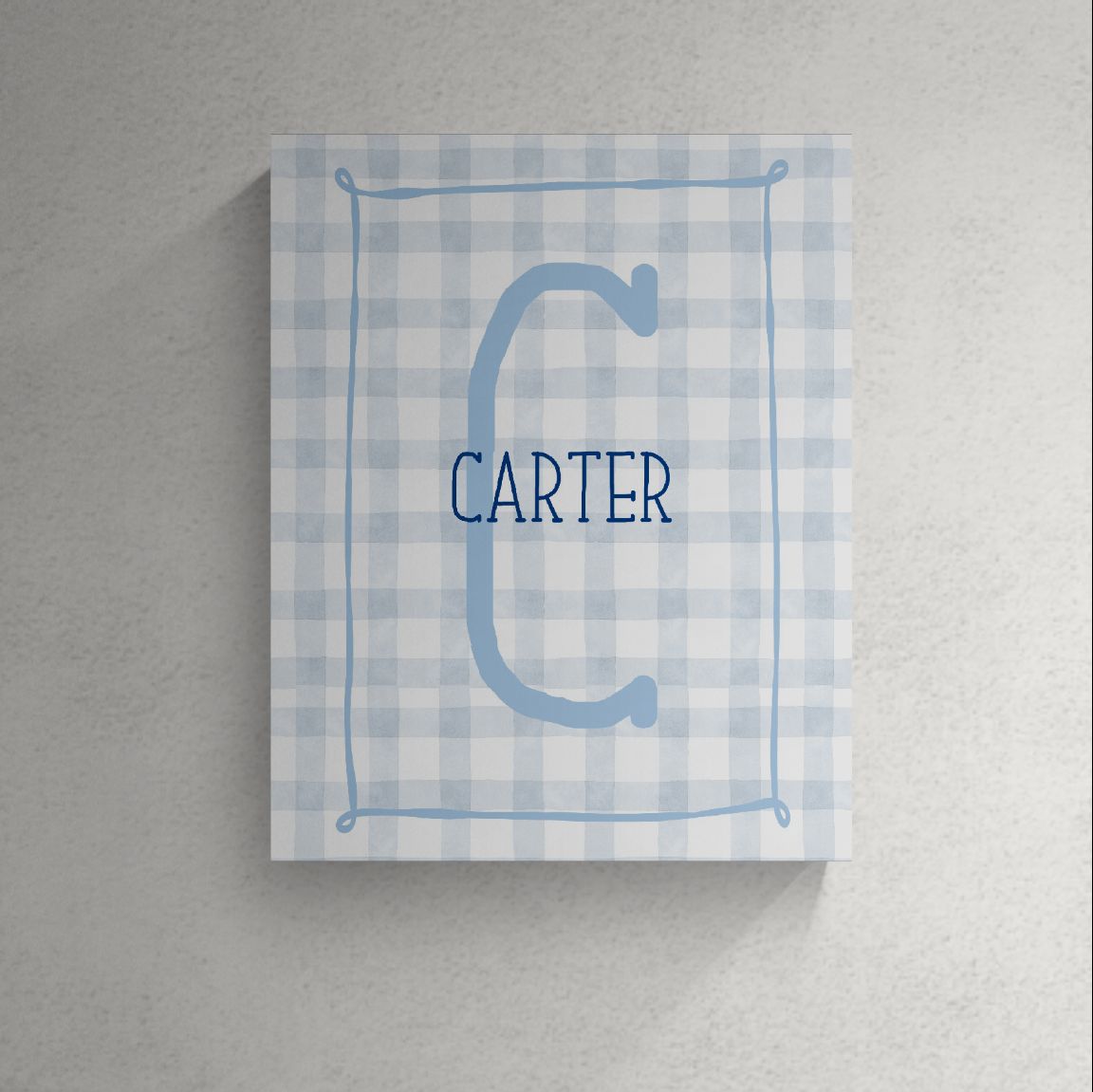 Custom initial canvas in gender-neutral mint green and baby blue for Scandinavian nursery