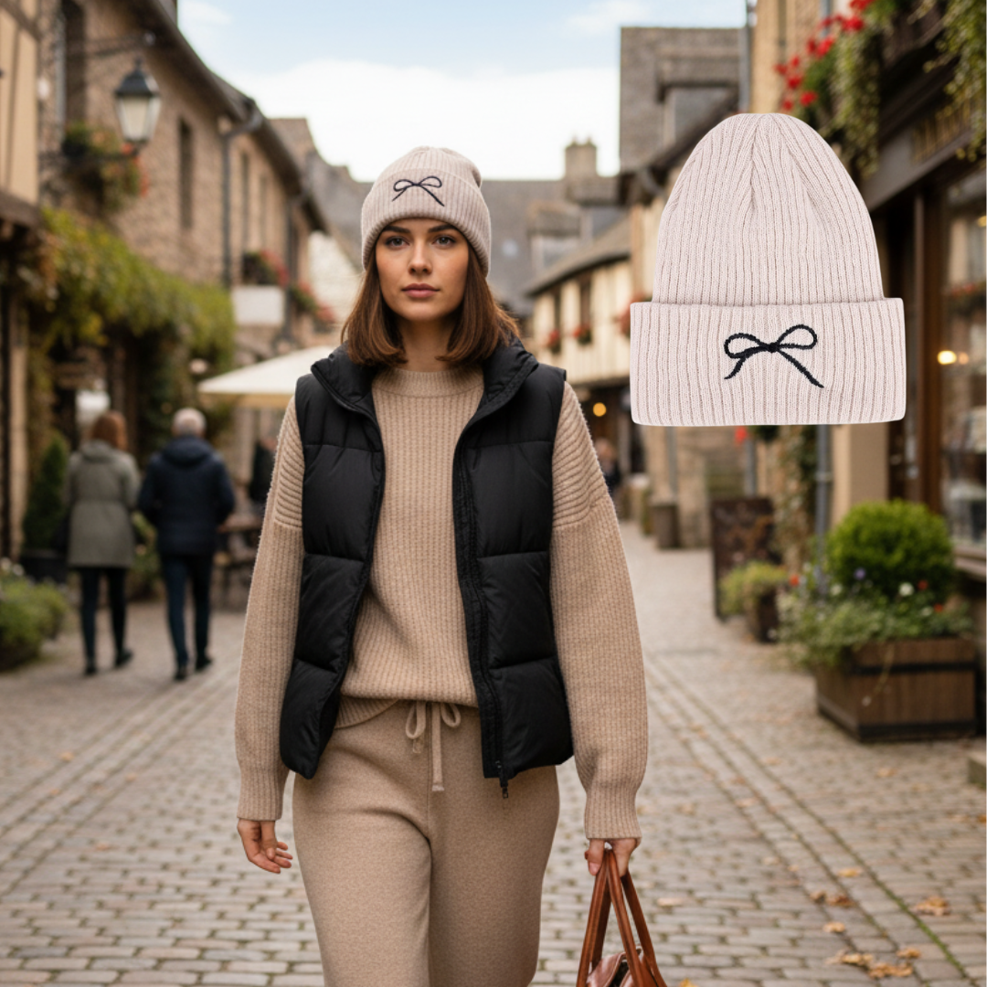 The coquette aesthetic is dominating social media, and this beanie is the perfect accessory to capture that trend. The bow embroidery adds a romantic, feminine touch without being over-the-top. It's cozy, comfortable, and undeniably cute - everything today's fashion-conscious customers are looking for.