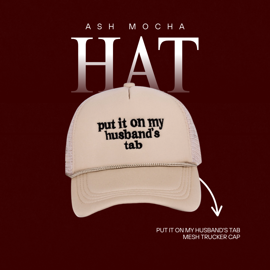 - Funny embroidered phrase - "PUT IT ON MY HUSBAND'S TAB"