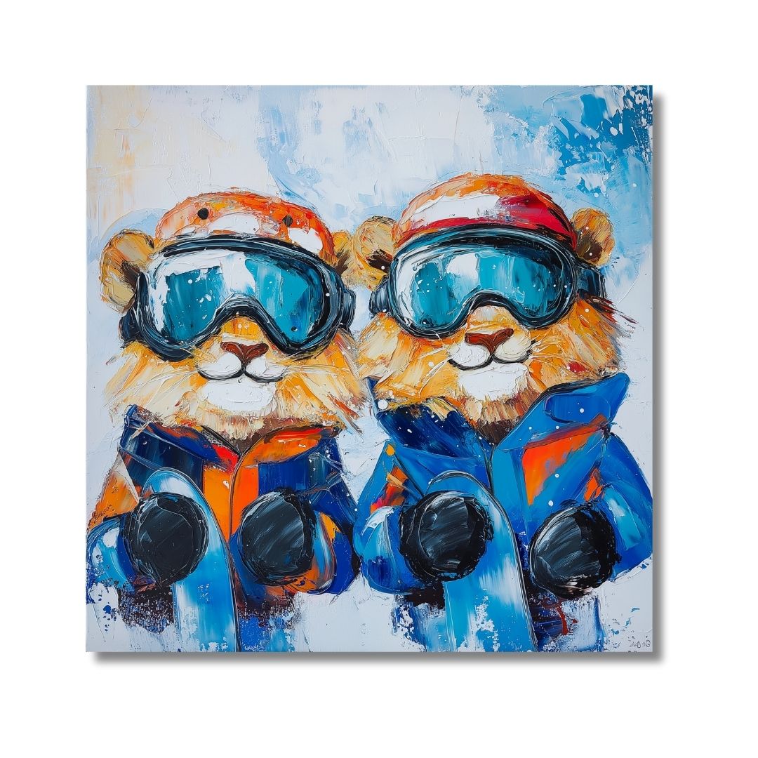 Bring the excitement of the slopes into your home with this vibrant 24x24 inch personalized canvas featuring two adorable ski or snowboard-loving animals! Perfect for winter sports enthusiasts and families, this playful piece can be customized with names, quotes, or special messages to create a one-of-a-kind treasure.